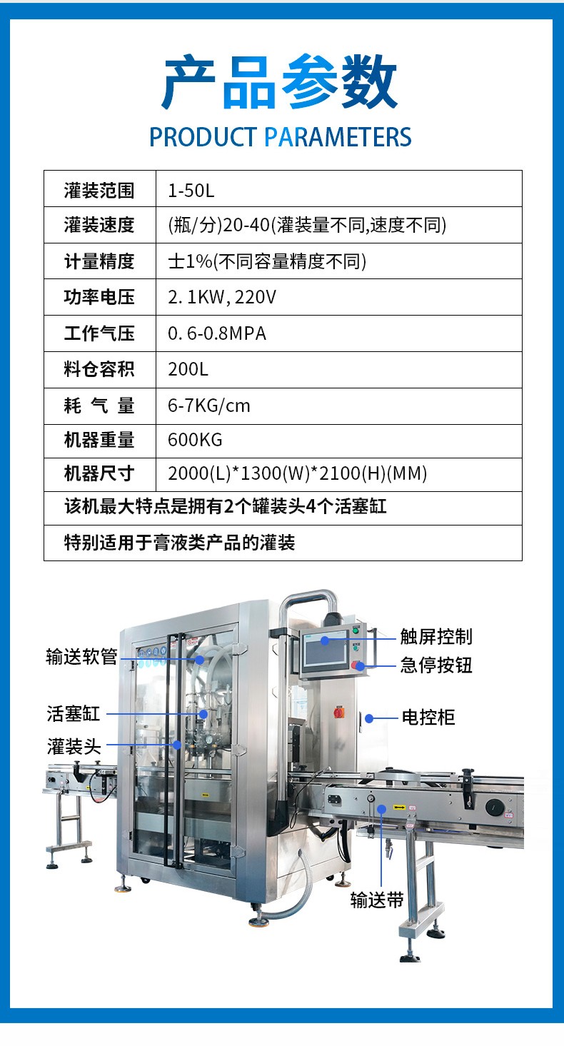 跟蹤式調(diào)味醬灌裝機(jī)設(shè)備配置定量灌裝、定液位灌裝兩種方式,計(jì)量誤差2克。定量灌裝保證每一瓶的灌裝質(zhì)量。定液位灌裝可讓每一瓶的液位都齊平,不會(huì)因?yàn)椴A康闹亓坎?誤差產(chǎn)品賣(mài)相。兩種模式,只需要一鍵切換。