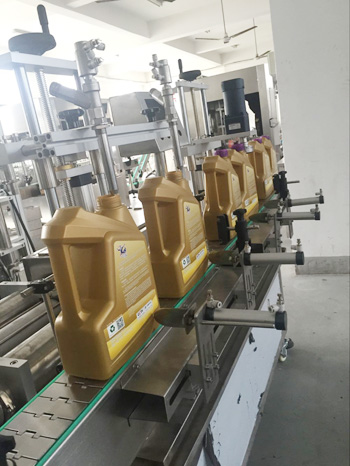 潤滑油灌裝旋蓋一體機為活塞式計量方式。計量范圍為1升-5升,離合式旋蓋結(jié)構(gòu),確保旋蓋合格率高,不傷蓋。本設(shè)備為灌裝旋蓋一體機,結(jié)構(gòu)緊湊,性價比高。該型號灌裝機適用于醫(yī)藥、日化、食品、農(nóng)藥及特殊行業(yè),是對酒精等液體進行灌裝的理想設(shè)備。