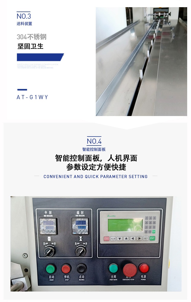 C、先進(jìn)的微電腦包裝控制器,優(yōu)良的人機(jī)對(duì)話模式,使速度、袋長(zhǎng)、切點(diǎn)位置檢測(cè)等都可在界面上直接顯示。