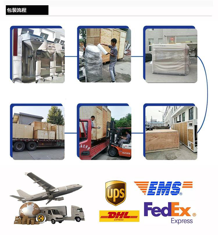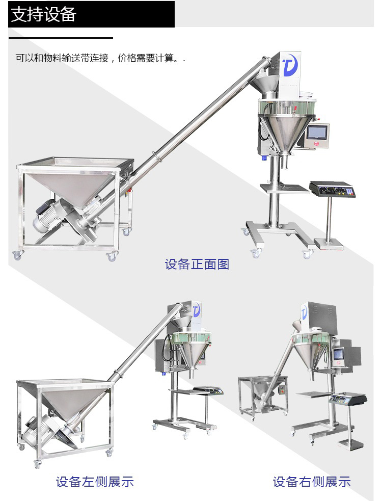 D、包裝范圍寬:同一臺定量包裝機在5-5000g內通過電子秤鍵盤調整及更換不同規(guī)格的下料螺旋連續(xù)可調